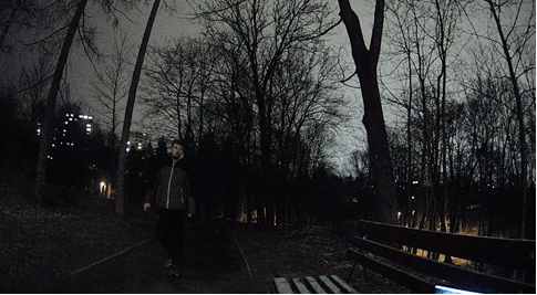 Při 8 FPS dokáže kamera i přes výrazný šum bez větších problémů zachytit postavu a zároveň v této scéně nedochází k přepalům.